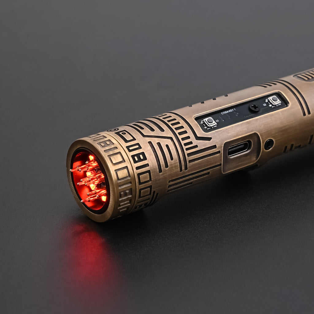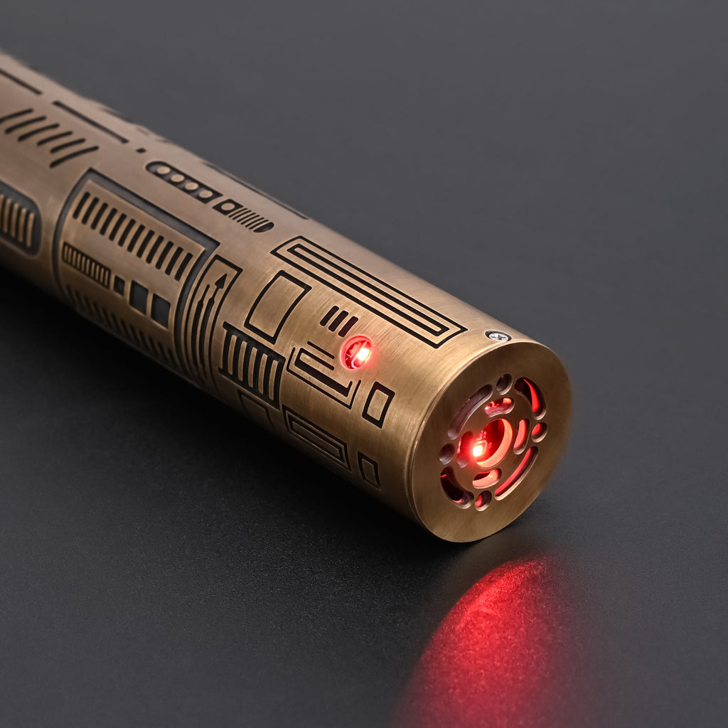 Wysoce czułe czujniki ruchu: Ciesz się płynnymi dźwiękami przy ruchach miecza oraz sterowaniem gestami – aktywacja przez obrót, pchnięcie, przeciągnięcie końcówki i skręt do zmiany mocy i fontów dźwiękowych.