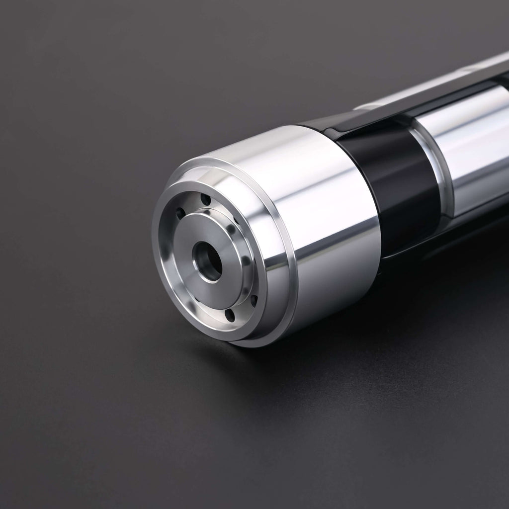 The Star SE Saber from NSABERS is a precision-engineered masterpiece inspired by the power and intensity of Galen Malek. Forged from aerospace-grade 6061-T6 aluminum, the hilt is CNC-machined for durability, balance, and a clean, streamlined profile. Deeply milled grip grooves provide a secure, confident hold, while the open-vented emitter showcases the ignition point for a dramatic visual effect. Rear resonance ports enhance sound projection, delivering a powerful roar with every swing and clash.