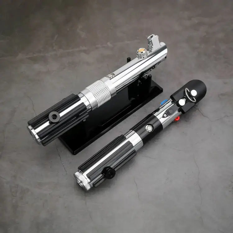 The Chosen One lightsaber set from NSABERS is a legendary collector’s bundle that embodies the complete transformation of Anakin Skywalker, uniting the refined craftsmanship of the Anakin SE lightsaber with the raw dark power of the Vader SE lightsaber. Precision-crafted from aircraft-grade aluminum with movie-accurate details and innovative enhancements, both hilts are duel-ready with sharp blade edges, ergonomic grips, and perfectly balanced designs for smooth handling and fierce combat. Equipped with durable construction, smooth-swing motion sensors, and advanced features, the Chosen One lightsaber set delivers unmatched performance while symbolizing the eternal struggle between Jedi light and Sith darkness—making it an essential masterpiece for Star Wars fans and collectors alike.