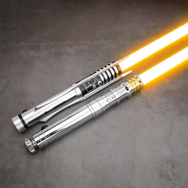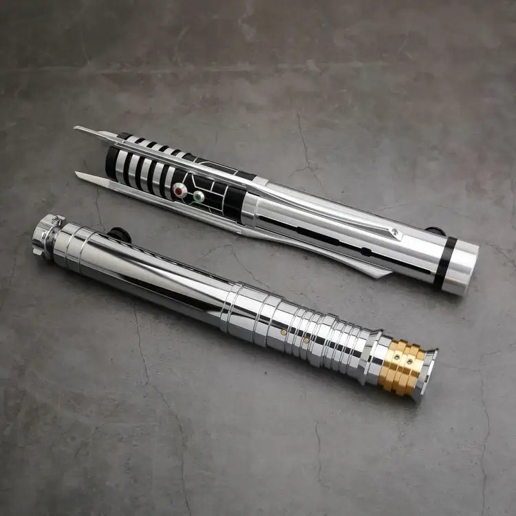 The Prodigal Knight lightsaber bundle from NSABERS is the ultimate tribute to the legend of Revan, uniting his iconic Jedi (RVJ) and Sith (RVS) sabers to represent his full journey from savior to conqueror and from darkness back to light. Precision-machined from high-quality aircraft-grade aluminum alloy, both hilts feature brushed silver finishes, textured grips, and ergonomic contours that ensure durability, balance, and comfort during combat. Designed for collectors and duelists alike, the Prodigal Knight lightsaber set combines Revan’s two legendary weapons into one premium bundle, making it an essential piece for any Star Wars enthusiast seeking authenticity, performance, and history in their collection.